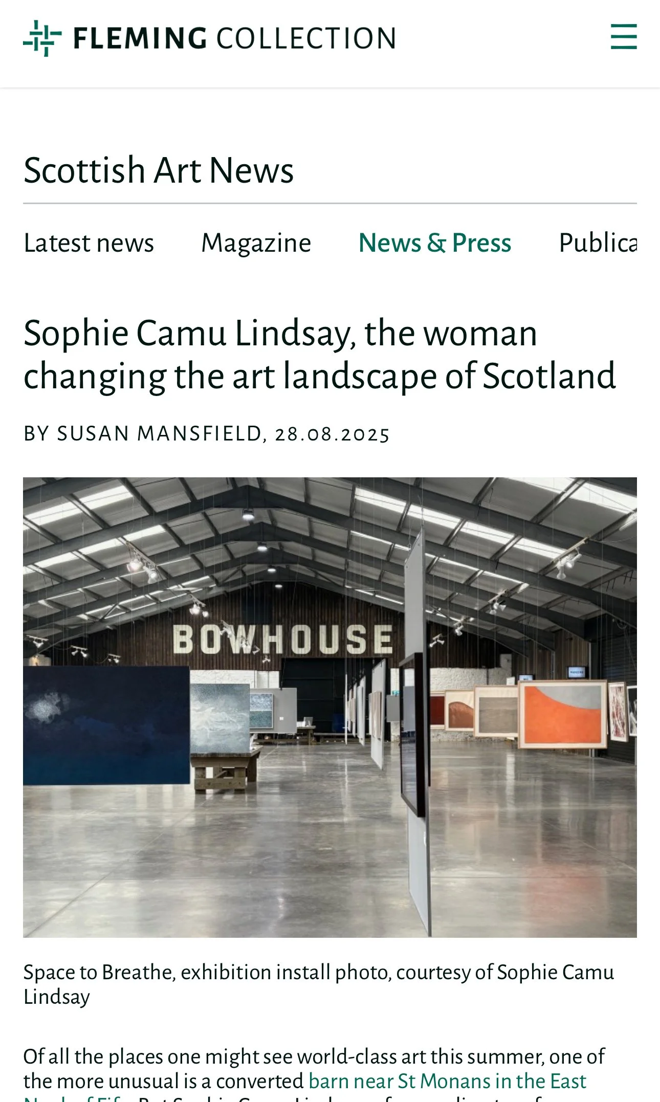 Aug 2025 Scottish Art News, Flemming Collection Website. Click to see full article